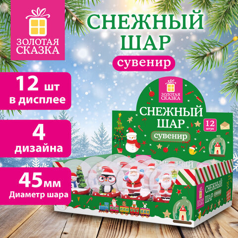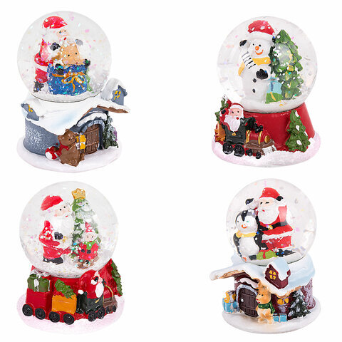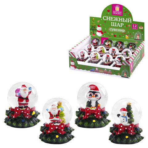 Сувенир снежный шар ДРУЗЬЯ ДЕДА МОРОЗА, диаметр 45 мм, полистоун/стекло, 4 дизайна ассорти, ЗОЛОТАЯ СКАЗКА, 592138