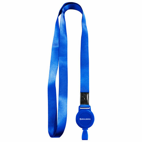 Держатель-рулетка для бейджей 70 см, с лентой 45 см, синий, BRAUBERG EXTRA, 238837