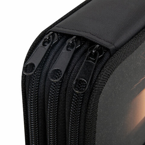 Пенал ЮНЛАНДИЯ стандартного размера с тремя отделениями, выполнен из картона с эффектом soft-touch. Яркий дизайн. Удобная молния с металлическим бегунком с трех сторон, прочные резинки для канцелярских принадлежностей. Вмещает до 42 предметов.