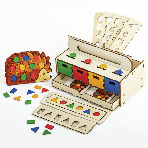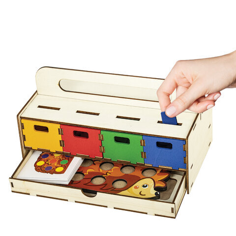 Сортер деревянный развивающий 4 в 1 "Волшебный сундучок", карточки, фигуры, BRAUBERG KIDS, 665265