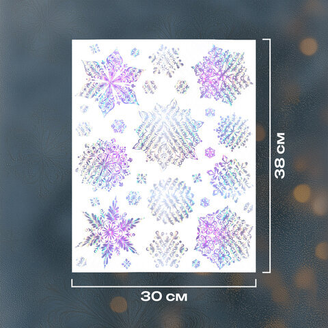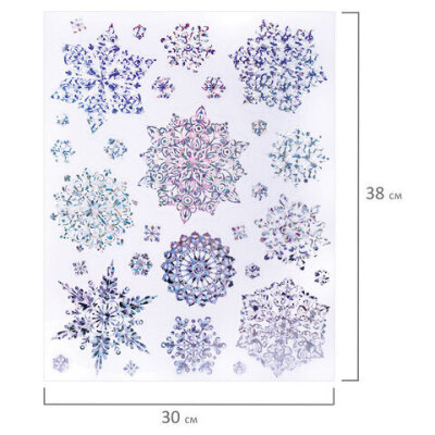 Наклейка для окон, 30х38 см, "Морозные снежинки", голография, серебро, ЗОЛОТАЯ СКАЗКА, 592574