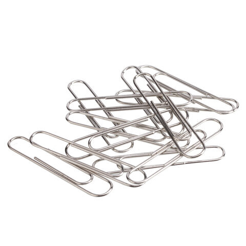 Скрепки большие 50 мм, BRAUBERG, никелированные, 50 шт., в картонной коробке, РОССИЯ, 221525