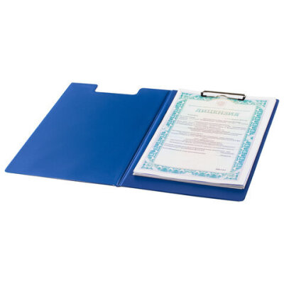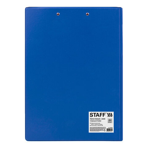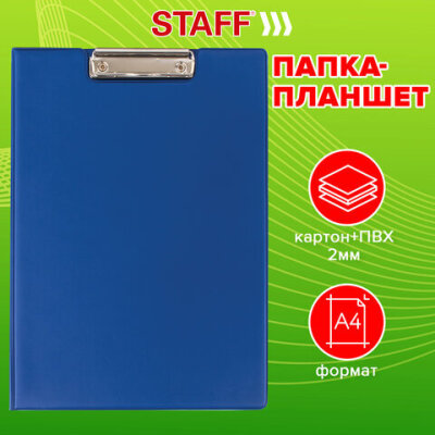 Папка-планшет STAFF, А4 (318х228 мм), с прижимом и крышкой, картон/ПВХ, СИНЯЯ, 229558
