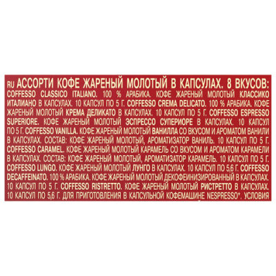 | Количество кофейных капсул в упаковке | 80 шт. |