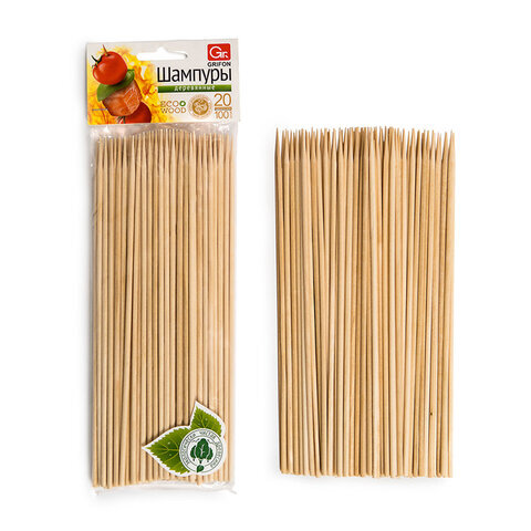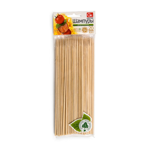 Шампуры деревянные 200 мм, КОМПЛЕКТ 100 шт., береза, GRIFON, 400-101