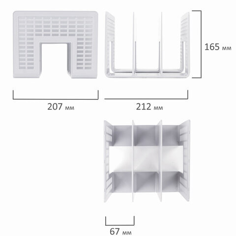 Лоток-сортер для бумаг BRAUBERG "Radikal", 3 отделения, 207х212х165 мм, сетчатый, серый, 235365
