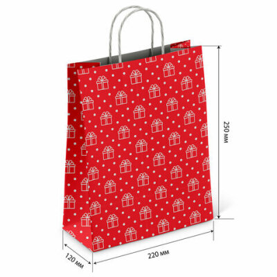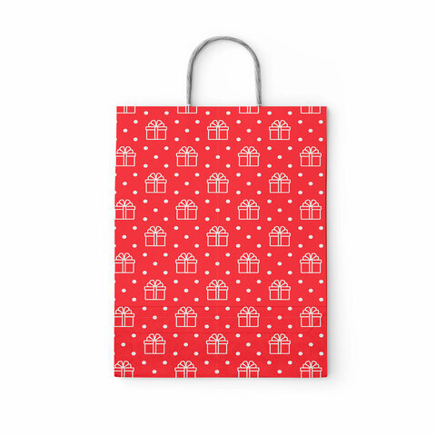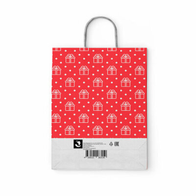 Крафт-пакет бумажный "Сюрприз" 22х12х25 см, с кручеными ручками, плотность 100 г/м2, белый, 113150