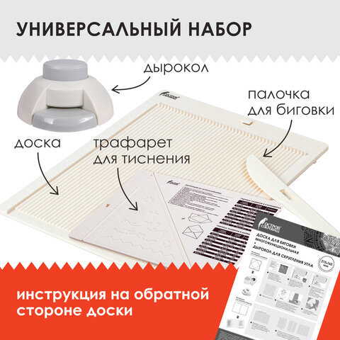 Комлектация дырокол, палочка для биговки, трафарет для тиснения