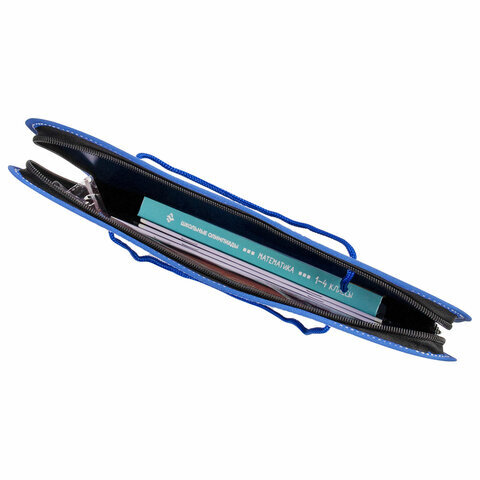Папка на молнии пластиковая с ручками BRAUBERG, А4, 350х270х45 мм, фактура бисер, синяя, 225163