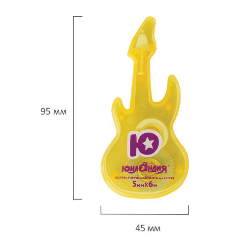 Корректирующая лента ЮНЛАНДИЯ "ГИТАРА", 5 мм х 6 м, корпус желтый, блистер, 227798