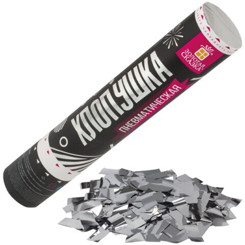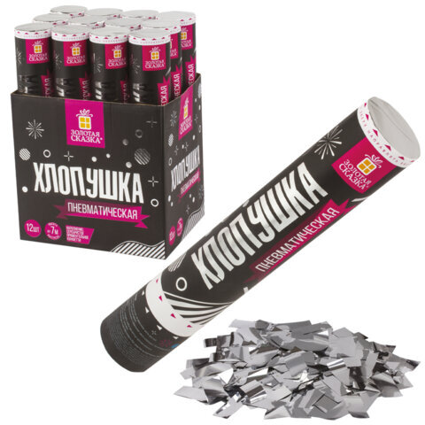 Хлопушка пневматическая ЗОЛОТАЯ СКАЗКА 30 см, фольга, прямоугольники, серебристый, 591477