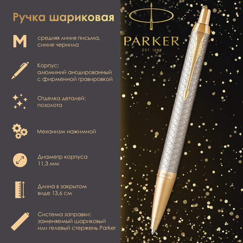 Шариковая ручка "IM Premium Warm Silver GT", модель 2017 года из обновленной коллекции IM, - исключительный профессионализм и надежность. Корпус из алюминия серебристого цвета с оригинальной гравировкой в виде графического орнамента. Позолоченные детали.