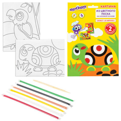 Набор для творчества "Картина из цветного песка", "В Африке", 2 самоклеящиеся основы 20х15 см, ЮНЛАНДИЯ, 662369