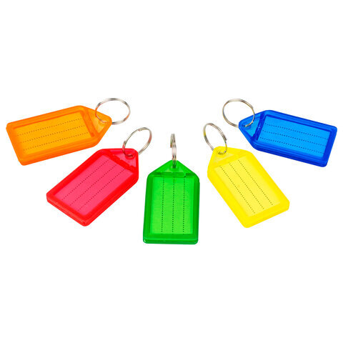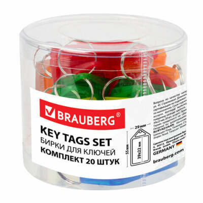 Бирки для ключей КОМПЛЕКТ 20 ШТ., длина 55 мм, инфо-окно 39х22 мм, АССОРТИ, BRAUBERG, 237495