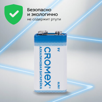 Алкалиновые батарейки CROMEX типоразмера 9V идеально подходят для приборов со средним и высоким потреблением энергии. Рекомендуется использовать в настенных часах, рациях, детских игрушках и микрофонах.