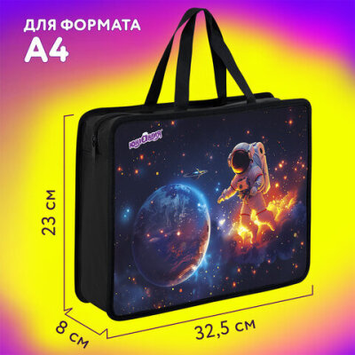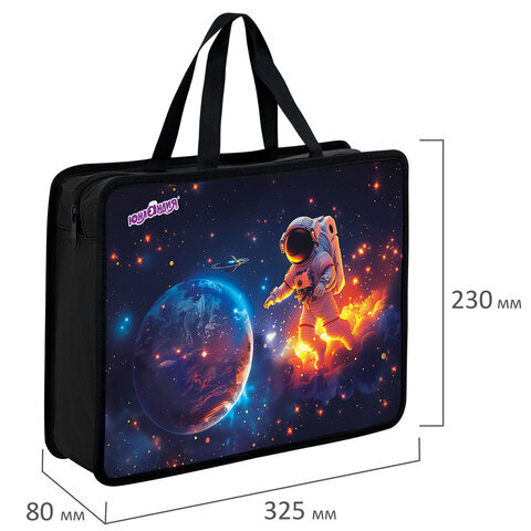Папка на молнии с ручками ЮНЛАНДИЯ А4, 1 отделение, пластик, 80 мм, "Space explorer", 273365