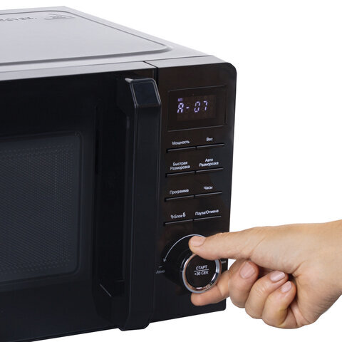 Микроволновая печь BRASSON (БРАССОН) MW2070D-8BL, 20 л, 700 Вт, таймер, 8 АВТО ПРОГРАММ, дисплей, защита от детей, черная, 454979