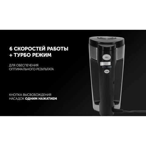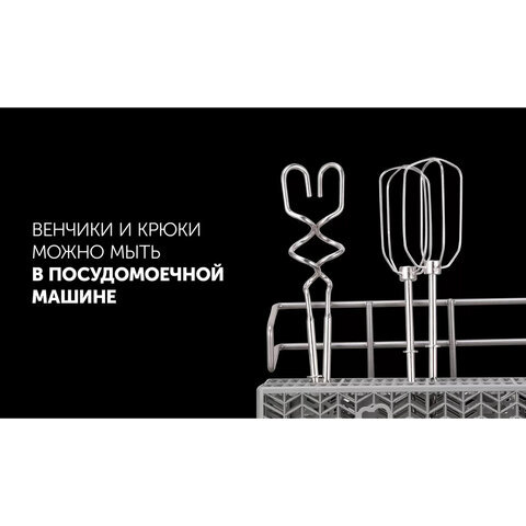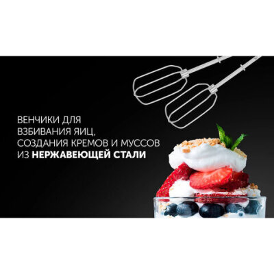 Миксер POLARIS PHM 5009A, 500 Вт, 6 скоростей, 2 венчика, 2 крюка для теста, черный, 25323