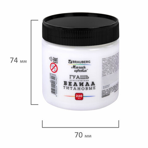 Гуашь классическая BRAUBERG "МАГИЯ ЦВЕТА" 1 шт., 220 мл, БЕЛИЛА ТИТАНОВЫЕ, 192388