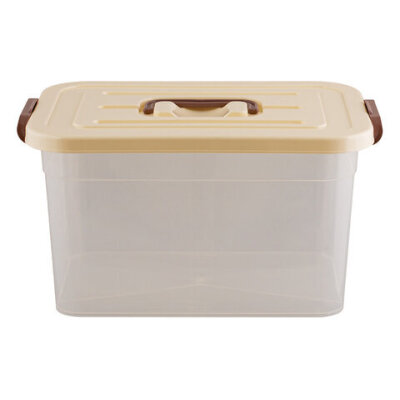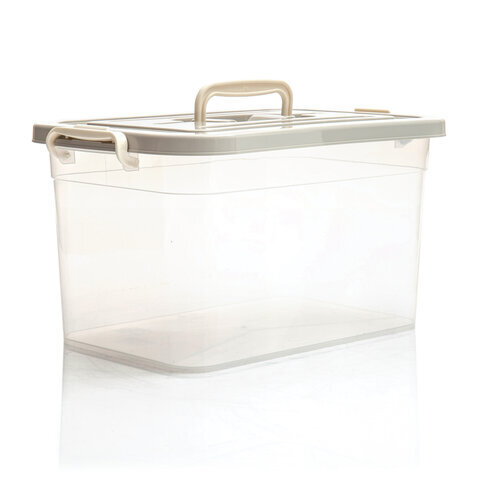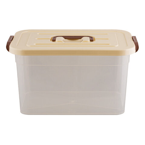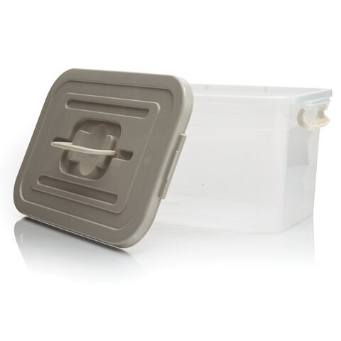 Ящик-контейнер 10 л с КРЫШКОЙ НА ЗАЩЕЛКАХ И РУЧКОЙ, 19х35х23 см, пластик, прозрачный, крышка ассорти, 810, 438100065