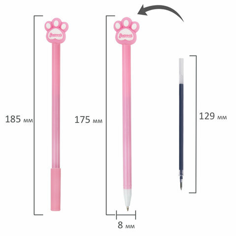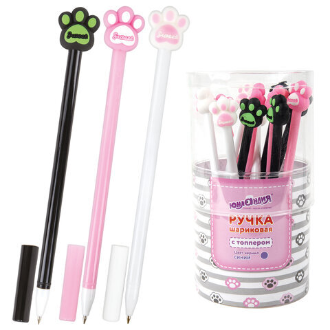 Ручка с топпером шариковая ЮНЛАНДИЯ "Лапка", корпус ассорти, СИНЯЯ, пишущий узел 0,7 мм, 143784