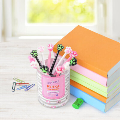 Шариковая ручка масляная ЮНЛАНДИЯ "Лапка" с милой игрушкой на корпусе.