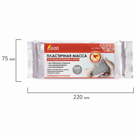 Паста (масса) для моделирования и лепки ОСТРОВ СОКРОВИЩ, самозатвердевающая, 500 г, серая, 228656