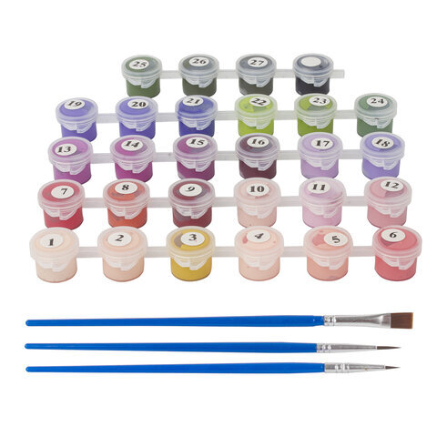 | Комплектация | акриловые краски, кисть, крепеж, лист бумаги для тренировки, холст на подрамнике |