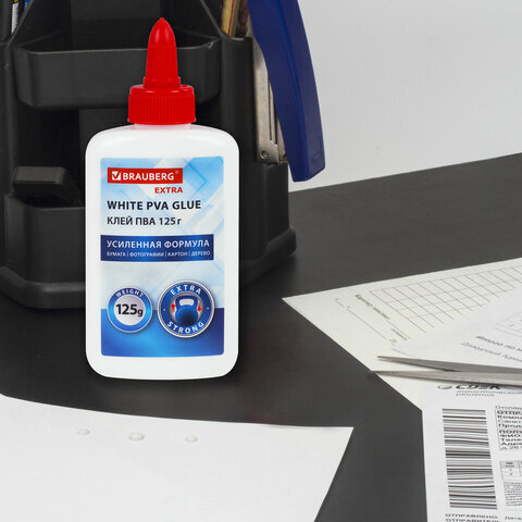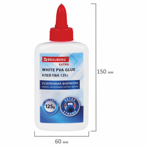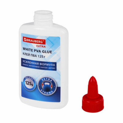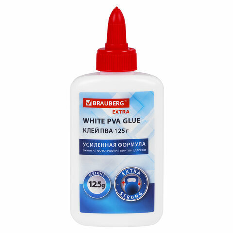 Клей ПВА, усиленный, BRAUBERG Extra (бумага, фотографии, картон, дерево), 125 г, 271940