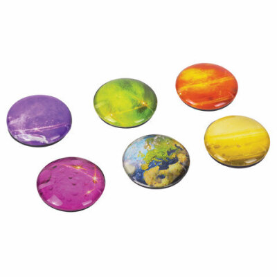 Магниты стеклянные 35 мм для досок магнитно-маркерных, НАБОР 6 шт., "3D Планеты", BRAUBERG Glass, круглые, блистер, 272517