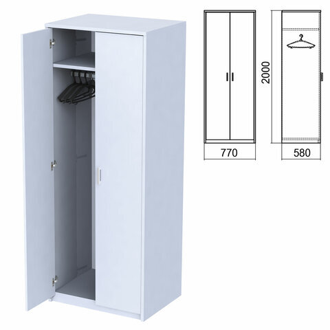 Шкаф для одежды глубиной — 580 мм оборудован стационарной штангой, расположенной по ширине шкафа, и отделением для головных уборов. Регулируемые опоры позволяют компенсировать возможные неровности пола.