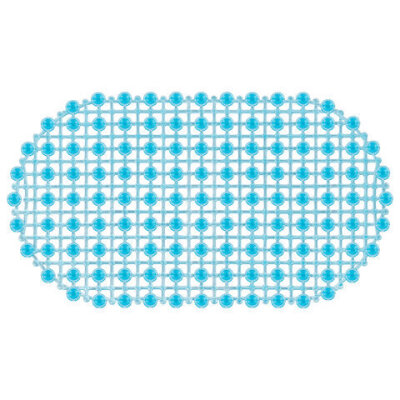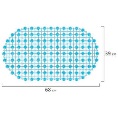 Коврик для ванны противоскользящий 68х39 см, "Молекулы", овальный, голубой, ПВХ, PRIMILA (ПРИМИЛА), 700388
