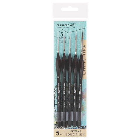 Кисти художественные набор 5 шт., синтетика, BRAUBERG ART CLASSIC, ЭРГОНОМИЧНЫЕ, 200950