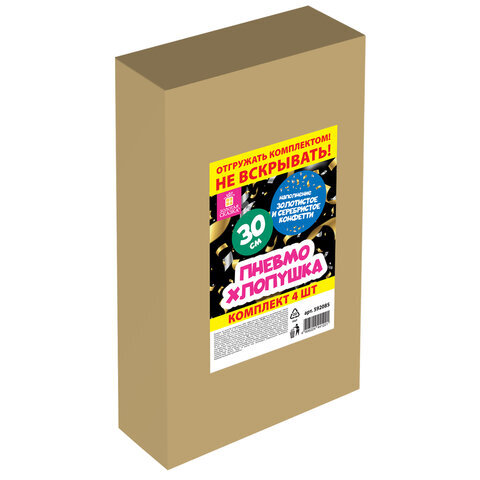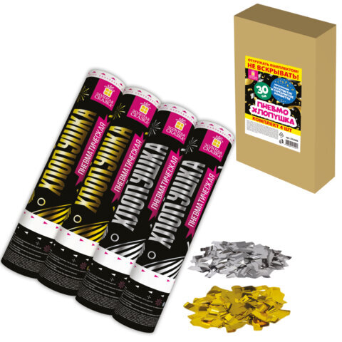Хлопушка пневматическая 30 см "Прямоугольники" НАБОР 3+1 шт. В ПОДАРОК, фольга золото/серебро, ЗОЛОТАЯ СКАЗКА, 592085