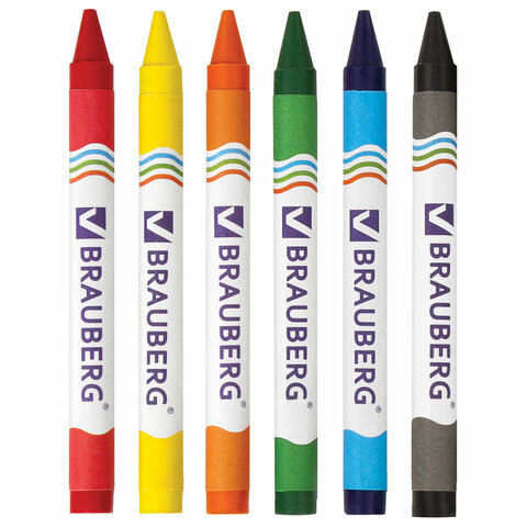 Восковые мелки BRAUBERG, НАБОР 6 цветов, 222961
