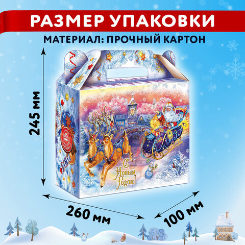 Новогодний подарок "ДЕД МОРОЗ НА САНЯХ" МОСУПАК – это сладости в картонной коробке с новогодним дизайном. Упаковка имеет удобную ручку для переноски. 1500 г популярных кондитерских изделий обязательно придутся по вкусу всем сладкоежкам!