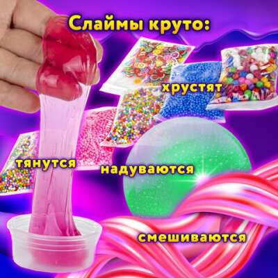 Набор слаймов с аксессуарами ЮНЛАНДИЯ - это отличное развлечение для детей. Кроме готовых слаймов, в набор входят пенопластовые шарики, блестки и другие аксессуары для создания своего уникального слайма. Не липнут к рукам, не пачкаются, не токсичны.