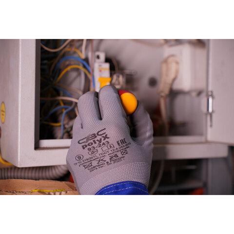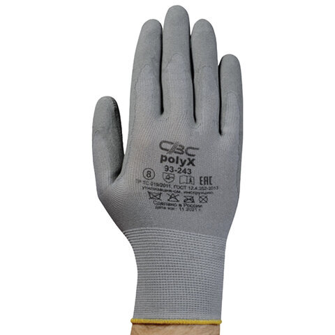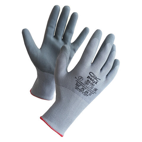 Перчатки полиэфирные ПОЛИКС маслостойкие 1 пара, 15 класс, 30-32 г, размер 9, покрытие - облив ПОЛИУРЕТАНОВОЕ, эластичные и комфортные, СВС, 93-243 сер/сер