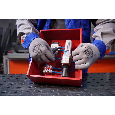 Эластичные и комфортные перчатки с полиуретановым покрытием плотно облегают руку, обеспечивая гибкость и чувствительность пальцев. Не пылят и не оставляют следов на глянцевых и стеклянных поверхностях, обладают отличной воздухопроницаемостью.