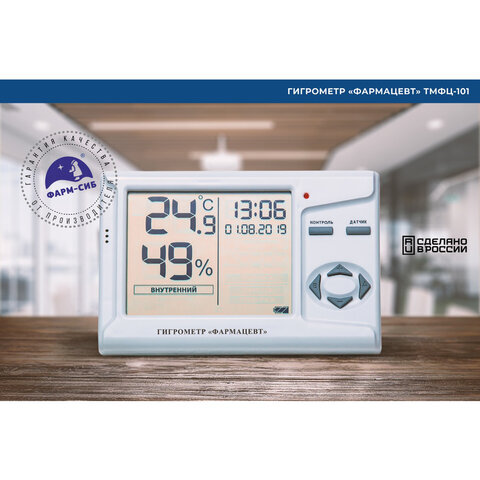 Гигрометр-термометр электронный ФАРМ-СИБ ТМФЦ-101 с поверкой РФ