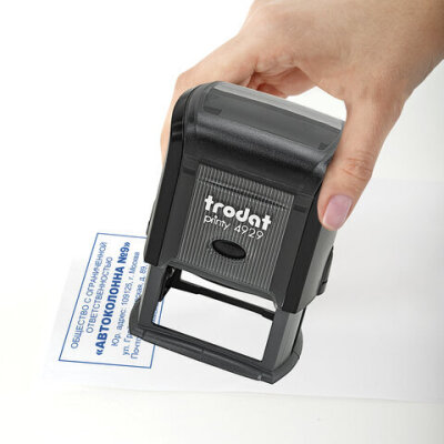 Автоматическая оснастка TRODAT предназначена для наклеивания на нее клише штампа, факсимиле и другой символики. Окрашивание клише и постановка оттиска происходит автоматически при нажатии на оснастку.
