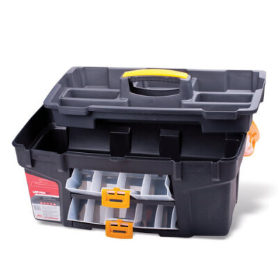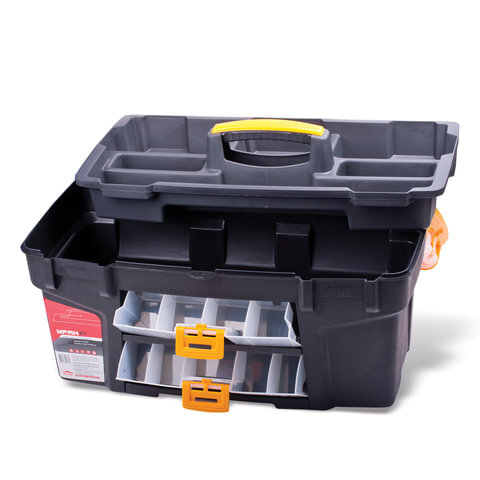 Прочный и надежный ящик для инструментов IDEA позволяет компактно хранить и переносить инструменты, а также другие хозяйственно-бытовые принадлежности. На корпусе имеется множество разнообразных дополнительных боксов и отсеков для различных мелочей.