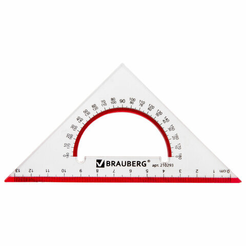 Прозрачный треугольник BRAUBERG с транспортиром предназначен для чертёжных и измерительных работ.
