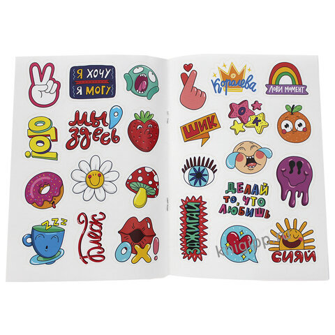 В этой брошюре вас ждут 50 ярких стикеров с оригинальными дизайнами! Благодаря качественной самоклеящейся бумаге наклейки легко отделяются от основы. Их можно приклеить куда угодно: на телефон, ноутбук, в тетрадку — куда подскажет фантазия!