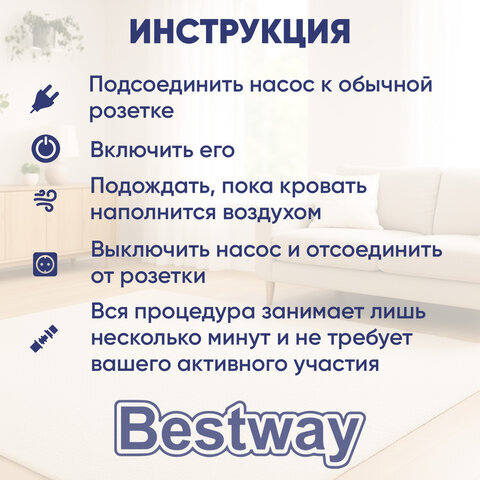 Надувная кровать BESTWAY размером 97х191х46 см с подголовником предназначена для использования в помещении.