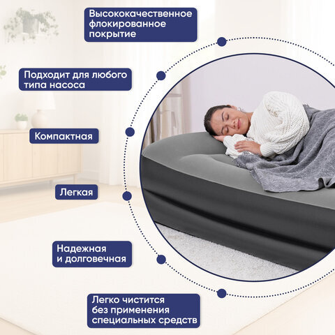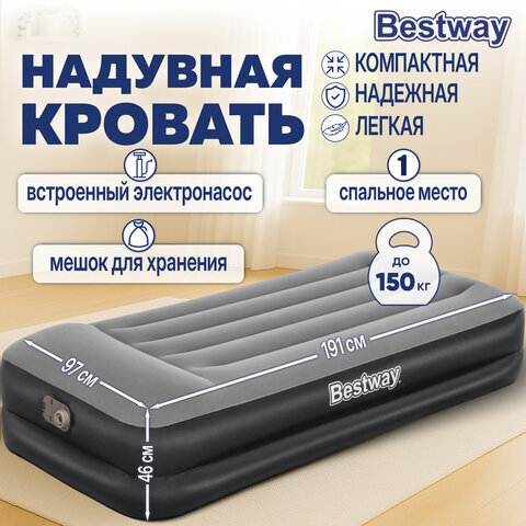 Надувная кровать 97х191х46 см, с подголовником, встроенный насос 220 В, до 150 кг, BESTWAY, 67401