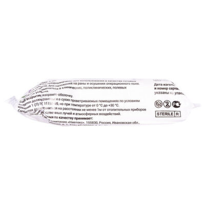 Стерильные марлевые салфетки изготовлены из отбеленной хлопчатобумажной медицинской марли плотностью 36 гр./м.кв. путем сложения в 2 слоя. Салфетки сложены индивидуально и упакованы по 5 шт.