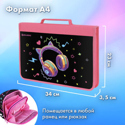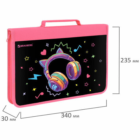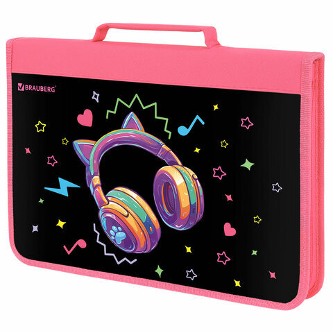 Папка на молнии BRAUBERG А4 с ручкой, с органайзером, 1 отделение, "Headphones", 273384