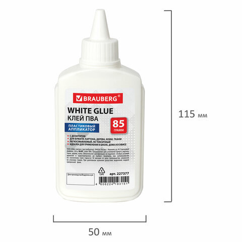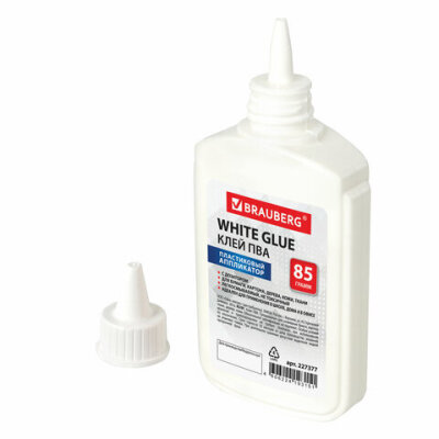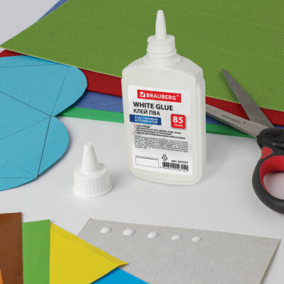 Клей ПВА BRAUBERG предназначен для склеивания бумаги, картона, фотографий, дерева и кожи.