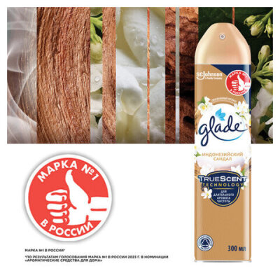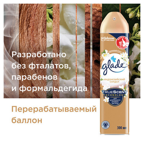 Освежитель воздуха аэрозольный 300 мл, GLADE "Индонезийский сандал", 864954